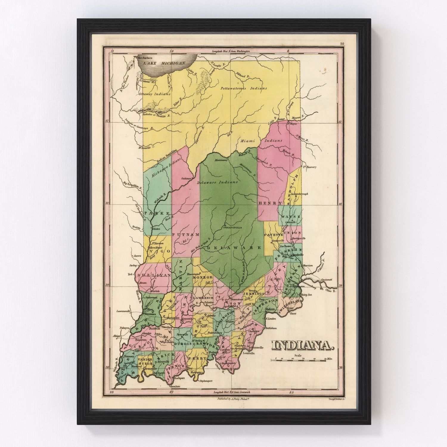 Discover a piece of history with our beautifully restored 1824 vintage map of Indiana. Whether you're a history buff or just love a touch of classic charm in your home, this map makes for an excellent addition. Perfect for decorating your office or living room, its traditional appeal creates a classy setting that’s sure to spark conversation among friends and family.
